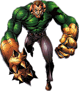 HOMEM-AREIAWilliam Baker, quando criança, morava no Brooklin e perdeu seu pai muito cedo. A partir de certa idade, ele entrou para o mundo do crime usando o nome de Flint Marko. Antes um criminoso comum, ele acabou sendo preso e enviado a uma colônia penal na Polinésia Francesa. Quando conseguiu escapar da prisão fugiu para uma ilha próxima, ignorando o fato de que na ilha estava para se realizar um teste de arma nuclear. O impacto indireto de radiação que sofreu em contato com a areia da praia lhe concedeu o poder de se transformar em uma grande massa de areia que pode assumir qualquer forma. Geralmente usa seu poder para moldar seus braços na forma de marretas descomunais para atacar seus inimigos, e para penetrar frestas, o que facilita a pratica de furtos.Ele ainda é capaz de criar roupas para cobrir seu corpo usando sua "carne-areia", mas esses trajes tinham sempre a aparência do uniforme da colônia penal: camisa verde listrada e calça marrom.A atividade criminosa do Homem-Areia é sempre frustrada pelo Homem-Aranha, seu maior inimigo. O ressentimento contra o herói e a possibilidade lucrativa de se livrar de uma vez dele levaram Baker a se engajar no Sexteto Sinistro, grupo criado com o propósito específico de eliminar o Escalador de Paredes. Antes disso, ele já tinha feito parte do Quarteto Terrível que rivalizava com o Quarteto Fantástico. Nessas histórias, aliás, Jack Kirby alterou o uniforme do vilão, fazendo-o parecer mais maligno. A partir daí, os desenhistas tem alternado o uniforme do Homem-Areia, de preferência quando o querem menos mau o desenham com a caracterização antiga. Já quando o enredo o torna mais maligno, preferem o uniforme de Kirby.O Homem-Areia também enfrentou o Hulk e numa passagem nos anos de 1970, para se curar de uma doença que estava transformando seu corpo em vidro, ele fez uma transfusão de sangue com Betty Ross, a namorada do gigante verde. Ele se curou, mas a moça passou algum tempo transformada em uma estátua de vidro.Nas histórias dos anos de 1980 e 1990, Baker se regenerou após ter passado pelo choque de se tornar um monstro de barro ao ser fundido com o Homem-Hídrico, mudou seu nome para Sylvester Mann para evitar problemas com a lei e ingressou nos Vingadores. Mais tarde abandonou o grupo e passou a trabalhar para Silver Sable. Enquanto estava nesse serviço foi sequestrado pelo antigo companheiro do Quarteto Terrível, o Mago. Ele usou sua máquina de controle de identidade para devolver ao Homem-Areia sua personalidade maligna. A máquina fez efeito, mas imediatamente o Homem-Areia se voltou contra o Mago, irritado por este ter manipulado sua mente.De volta ao crime, Baker voltou a se confrontar com o Homem-Aranha, ingressando num novo Sexteto Sinistro. Devido a um desentendimento com Venom, parceiro de equipe, Baker foi mordido, o que provocou uma reação no seu corpo, levando-o a se desmanchar. O Homem-Areia acabou espalhado por Nova York, dividido em vários Homens-Areias, cada um com um fragmento de sua personalidade. Depois, ao voltar a se reconstruir, seu lado ruim acabou prevalecendo.Originalmente, os poderes de Flint Marko consistiam em controle de areia, podendo ficar enorme, mudar-se em qualquer forma, ficar bem fino, podendo assim entrar em qualquer lugar e se endurecer como uma rocha. Ele é quase impossível de se prender, já que pode ficar fino e passar por qualquer passagem e é muito difícil de destruir. Mas não é completamente invunerável, já que é feito de areia. Sendo assim, a água pode desfazê-lo.